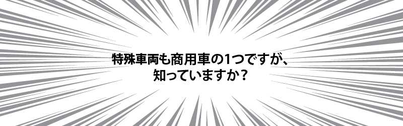 【商用車豆知識 #07 特殊車両編】 2025年9月22日2025年9月24日 admin 【商用車豆知識 #07 特殊車両編】 消防車、救急車、警察車両などの特殊車両も商用車のひとつ。特別な装備がついているため、査定や取扱には専門知識が求められます。日本の消防車や救急車は機能性や安全性が高く評価されており、国外でも需要があります。そのため、中古の場合でも需要が高く、特に日本製は世界的に高い評価を受けています。 前回のトピック:【商用車豆知識 #06 事業用と自家用編 】 も以下のボタンからチェック! 【 事業用と自家用編】へ